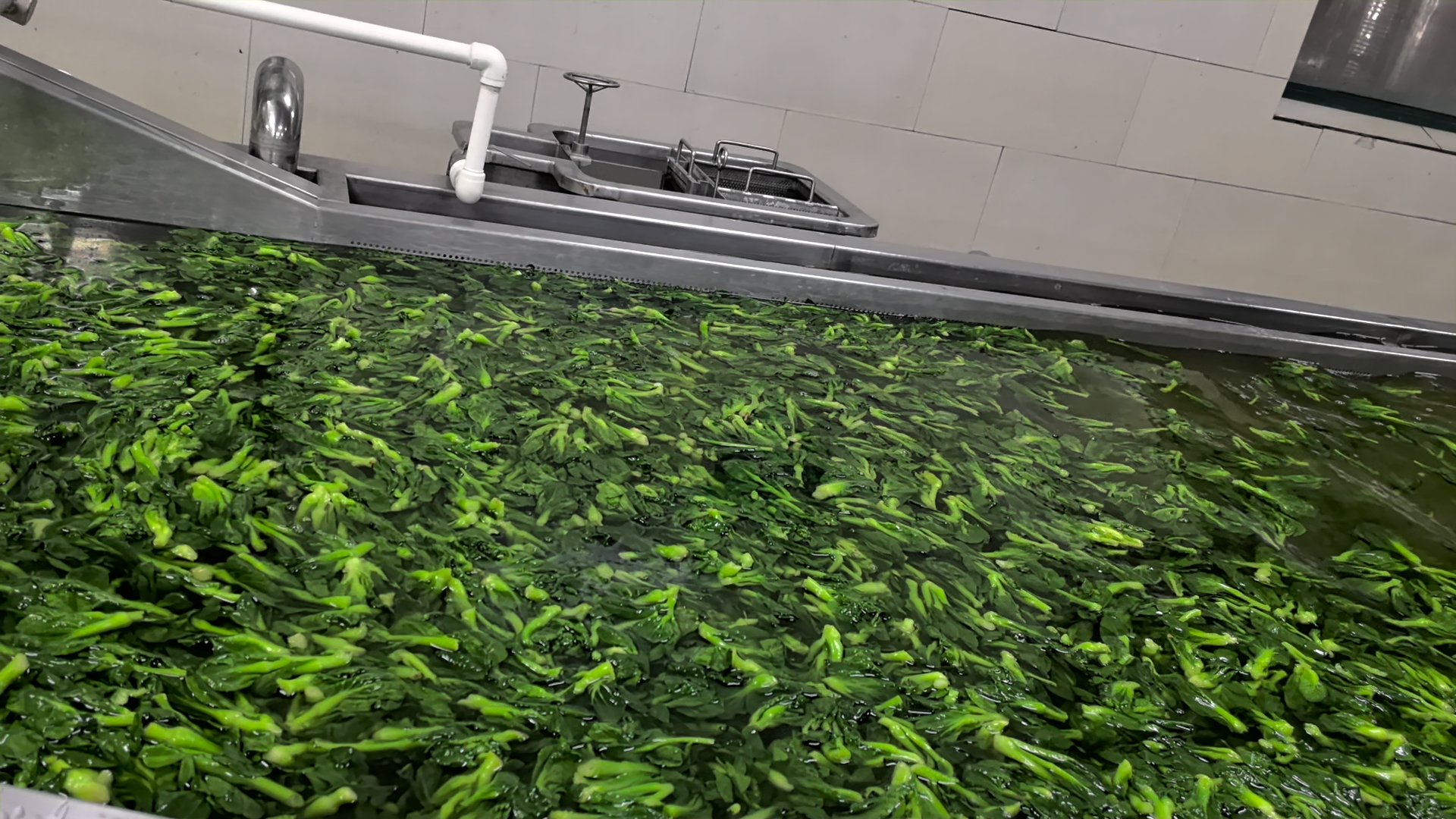 在清洗流程中,先进的气泡喷淋清洗设备运转,将菜苔表面的杂质与残留彻底洗净,再由传送带送至漂烫机做杀青护色保留菜苔原有新鲜气味。