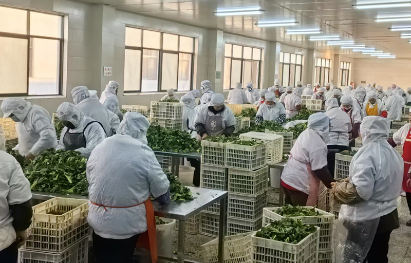 走进华祥食品的加工车间,一片繁忙而有序的景象映入眼帘。从新鲜菜苔的挑选环节起,工作人员严格把控品质,确保每一根进入生产线的菜苔都新鲜、翠绿、无瑕疵。